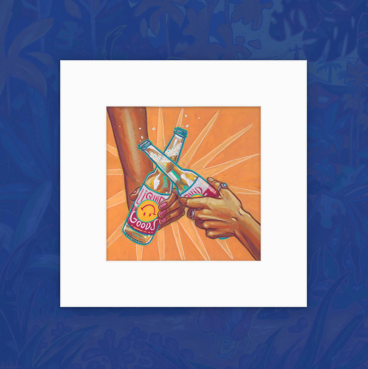 "Liquid Goods" Matted Fine Art Print Size: 12x12This print is a cropped version of a larger painting titled "Pau Hana" created in 2021, 24x24” acrylic, colored pencil on wood panel.• Actual print measures 8x8" printed 100% cotton archival paper.• Signed print comes with a 12x12" mat board and backing, and clear archival bag. * *Please allow for a possible production...