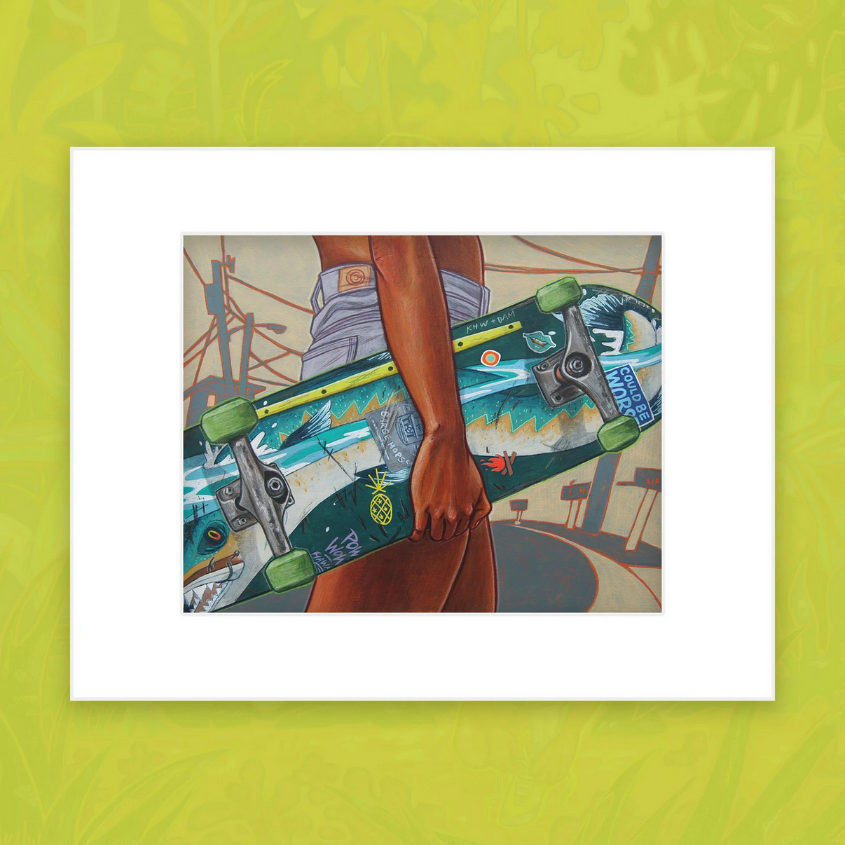 "Ooo Barracuda" Matted Fine Art Print(Original illustration was created in 2018, 10X8” acrylic, colored pencil on wood panel)Size: 11x14This illustration is part of my "28 Summers" series, inspired by a recent move back to my hometown, after spending many years across the country. The pieces are tied together by nostalgic interpretations of my childhood/adolescence growing up in Hawaii. With warm...