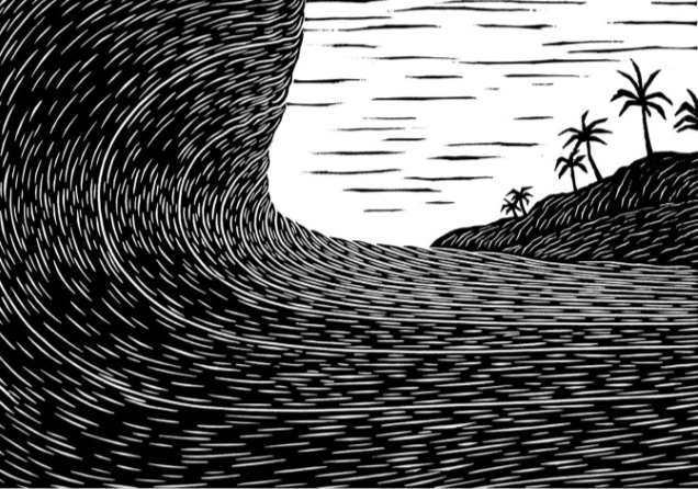 The North Shore of Oahu has some of the most beautiful beaches in the world. The white sand, palm trees and epic surf provide continuous inspiration for Kean. This woodcut print is a product of just that.
