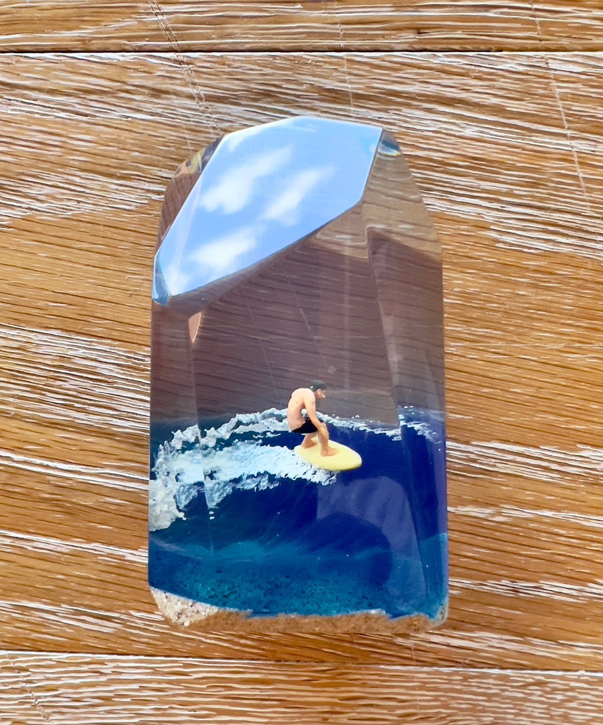 ブランド名のAumbak (オンバク)は、インドネシア語で「波」を意味するombakの略称です。すべては波です。Aumbakはコンセプトです。 この作品はサーファーとサーフボードと波が一体となる瞬間を捉えた作品です。 乗り手の精神を表す波の上のダンスをこの小さな世界で表現します。 手にした人がサーフィンを体感できるよう、一つ一つ丁寧に手作りしています。 サーファーなら誰もが持つ波に乗る喜び、そしてその瞬間の感情がクリスタルキューブに閉じ込められています。クリスタルキューブを傍らに置くことで、様々な感情を無意識に統合することができれば、あなたのミッションは成功です。 製品寸法: 長さ1.875インチ / 幅1.875インチ / 高さ3インチ サーファーと板と波が一体となった瞬間を切り取る波、様々な種類の板、 サーファーのスタイル、ライダーの精神が表現される波上でのダンスをこの小さな世界で表現。 手に取った人がそこからサーフィンの何かを感じられるよう丁寧に手作業で制作しています。 サーファーであれば誰もが持っている波に乗っている特別な喜び、その瞬間の感情がクリスタルキューブに閉じ込められています。 クリスタルキューブを側に置いて、さまざまな感情を無意識に統合することができればミッションは成功です。