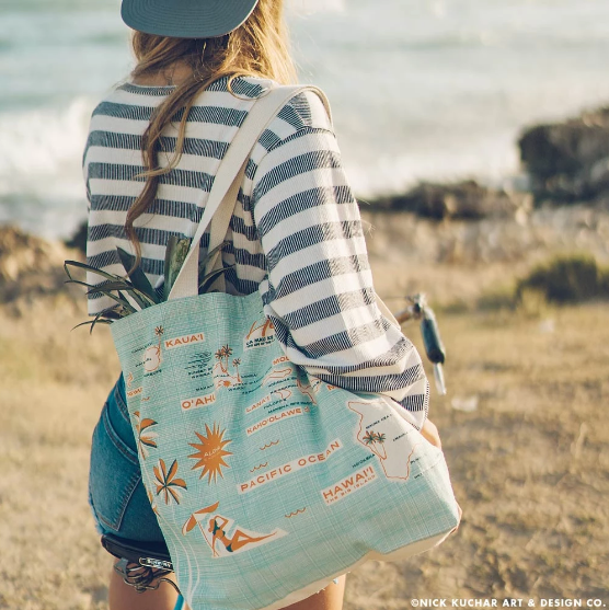 アメリカ製のハワイアンアイランドトートバッグは、太陽の下で過ごす一日に必要なものをすべて持ち運ぶのに最適です。ハワイの名高い山々、クレーター、ビーチが描かれたこの高品質コットントートバッグは、貿易風を肌で感じることができるでしょう。ビーチタオル、サーフワックス、パイナップル、パパイヤなど、様々なものを入れるのに最適です。カラーはアクア/ディープオレンジからお選びいただけます。バッグについてこのバッグは米国製で、サイズは 19"x16"x6" で、強化ハンドル付きの高品質コットン キャンバスに美しくスクリーン印刷されています。