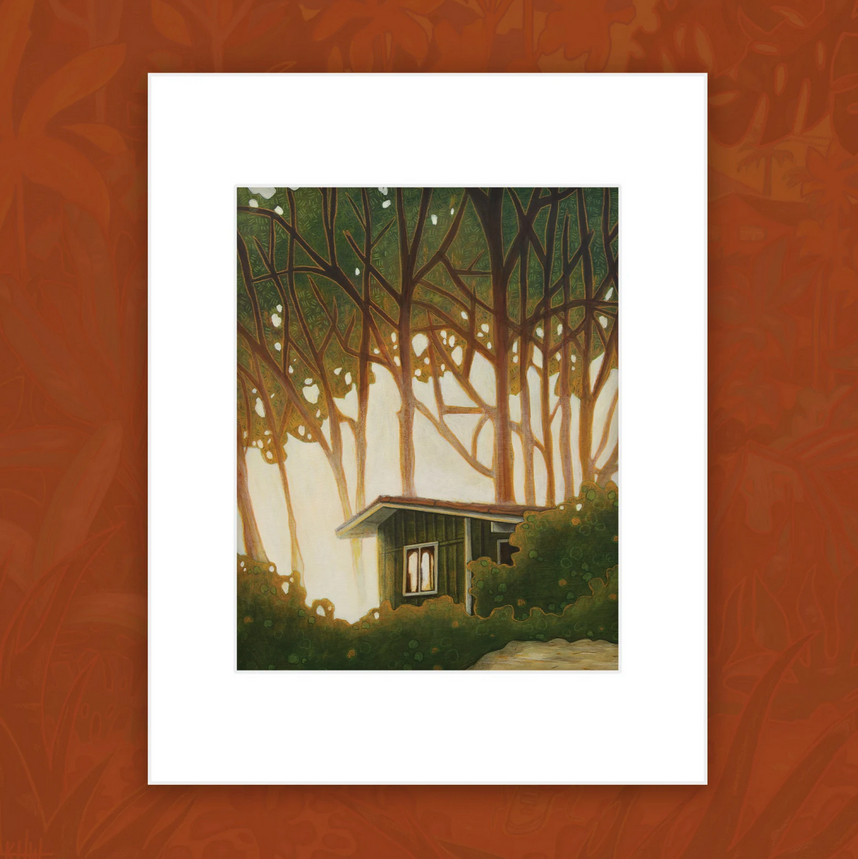 サイズ: 11x14 (原画は2018年に制作され、11.5×18インチのアクリルと色鉛筆で木製パネルに描かれています)このイラストは、ハワイのカフクにあるマラエカハナ ビーチ キャンプ場のアイアンウッドの木立の背後に沈む太陽によって作り出される「ゴールデン アワー」の輝きからインスピレーションを得ました。この画像は、標準サイズのマットボードに収まるように元の形式から切り取られています。 • 実際のプリントのサイズは 8 x 10 インチで、100% コットンのアーカイブ用紙に印刷されています。 • プリントには、11 x 14 インチのマットボードと裏板、透明なアーカイブ バッグが付属します。