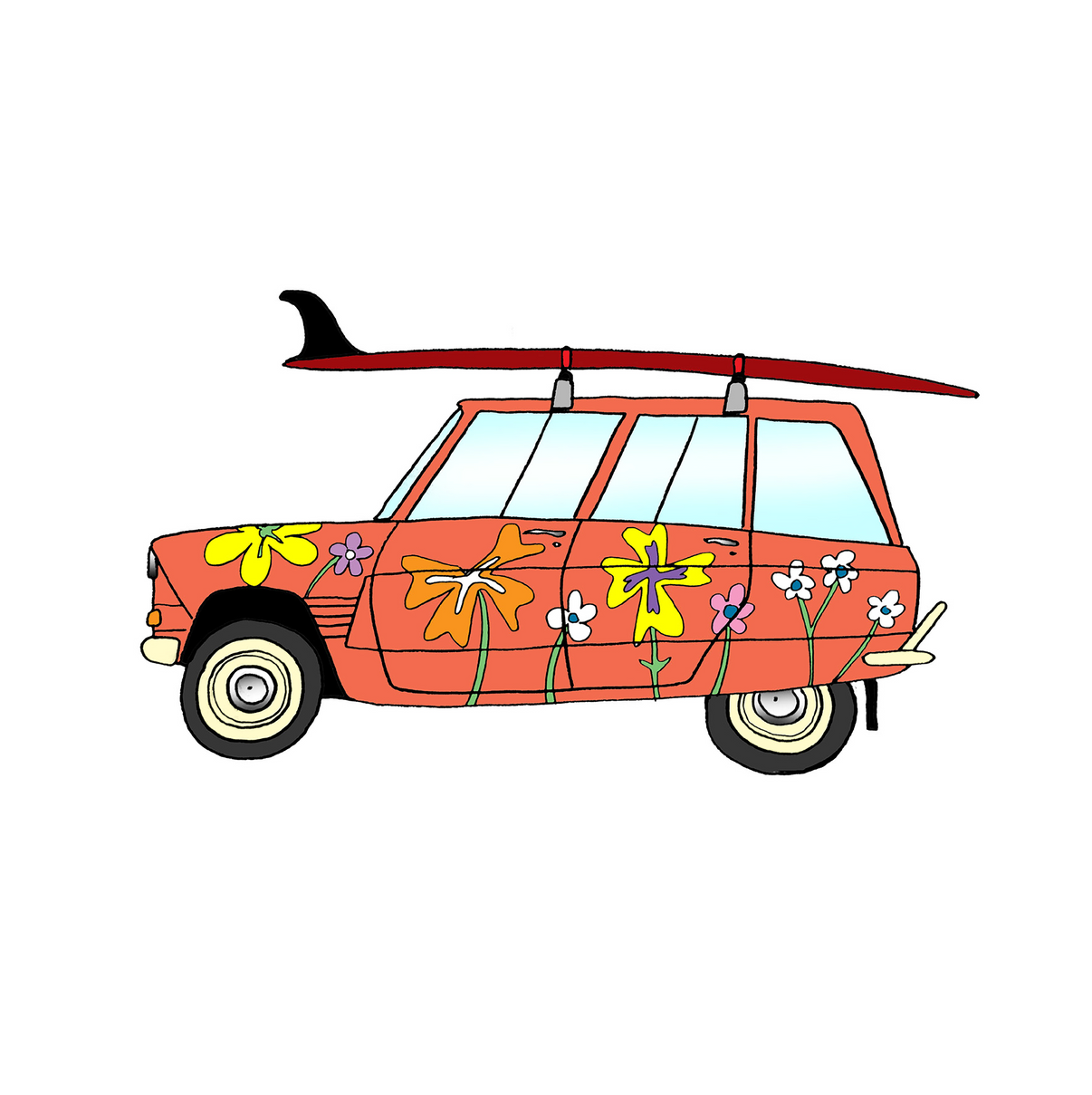 ケビン・バトラーによるラッド・カーズ・ラッド・サーフボード ジクレー印刷 紙プリント: 12x12インチ (マットプリント) キャンバスプリント:8x8インチ、12x12インチ、18x18インチ(ギャラリーラップ:すぐに飾れるアート) ※梱包・発送までに2~4週間程度の製作期間がかかる場合がございますのでご了承ください。