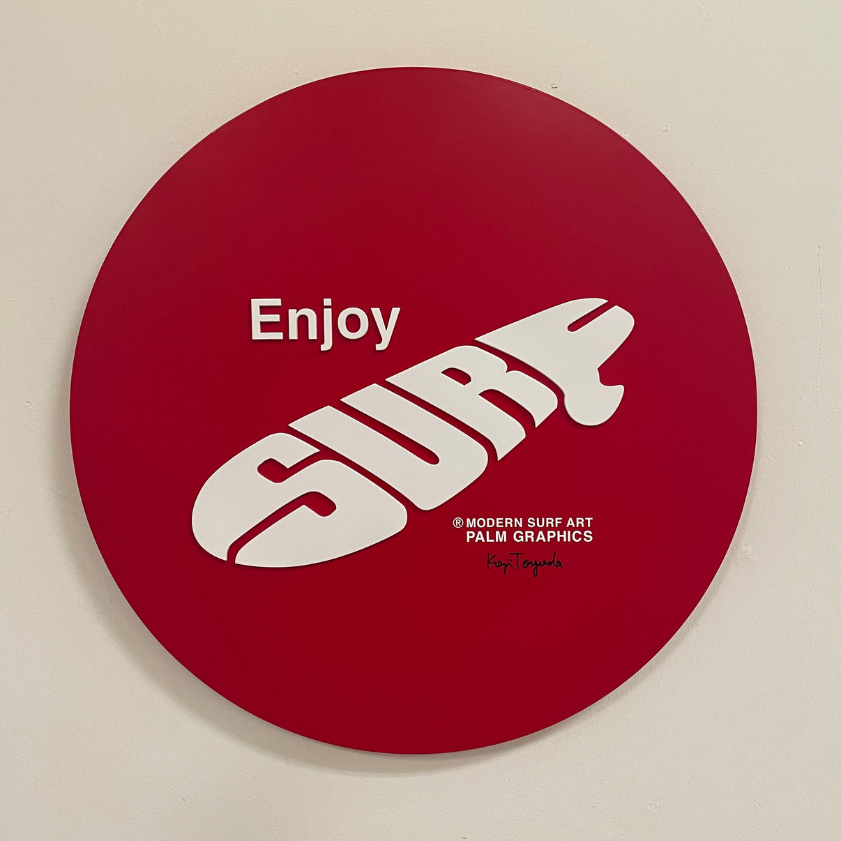 Ø400mm MDFにペイント これは1992年の30歳の誕生日に私がデザインした人生のロゴです。サーフィンとデザインを組み合わせたものです。子供の頃から大好きだった2つのこと。 豊田幸治