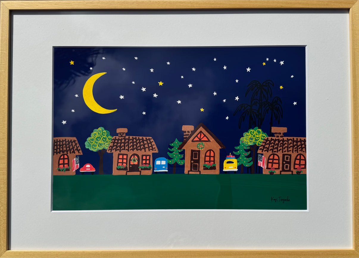 天然木フレームの紙に描かれたアクリル原画