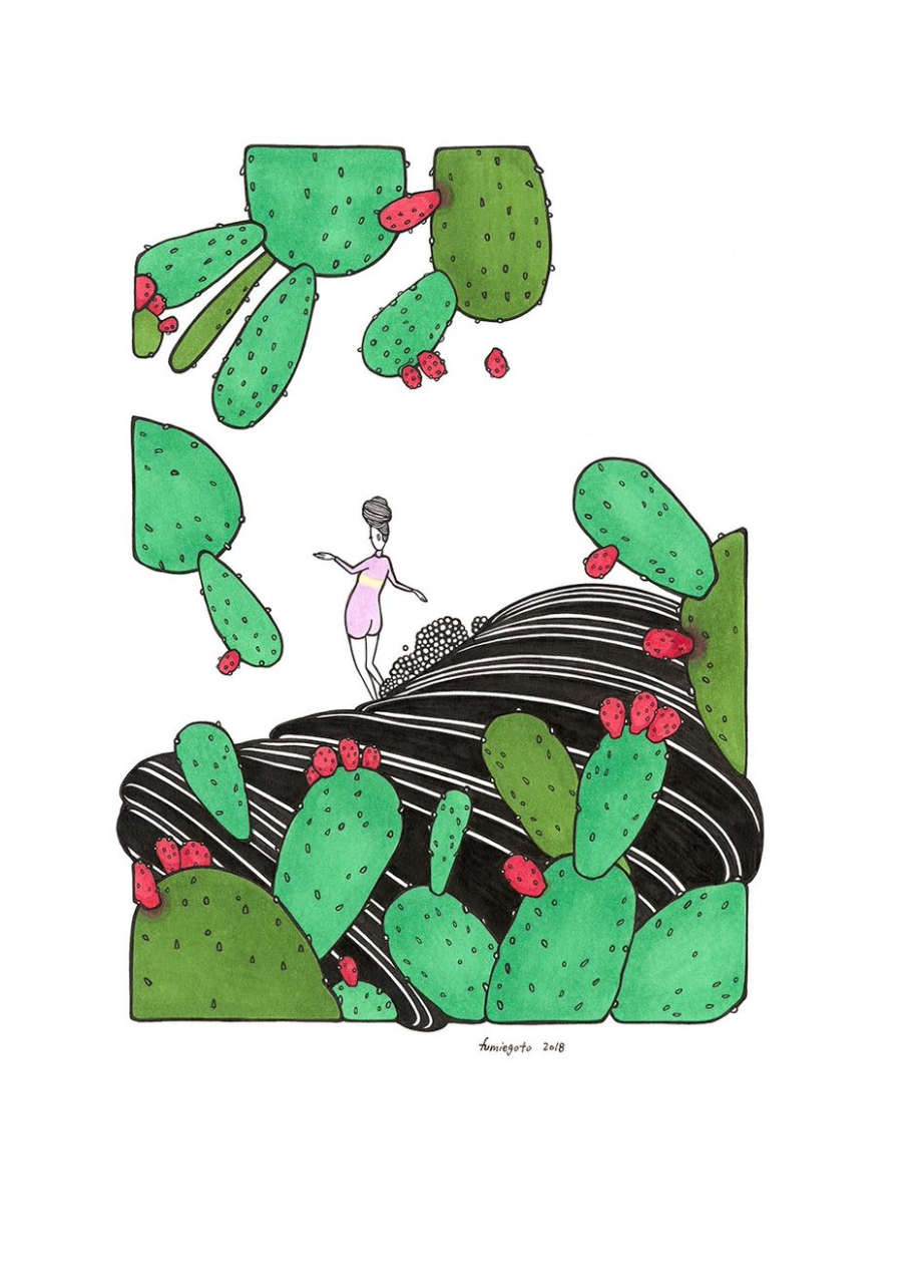 クリス・ゴトー・アート「In the Journey」コレクションの「CACTUS」は、アーティストがスペインの海辺の町カダケスを旅したことからインスピレーションを得ました。