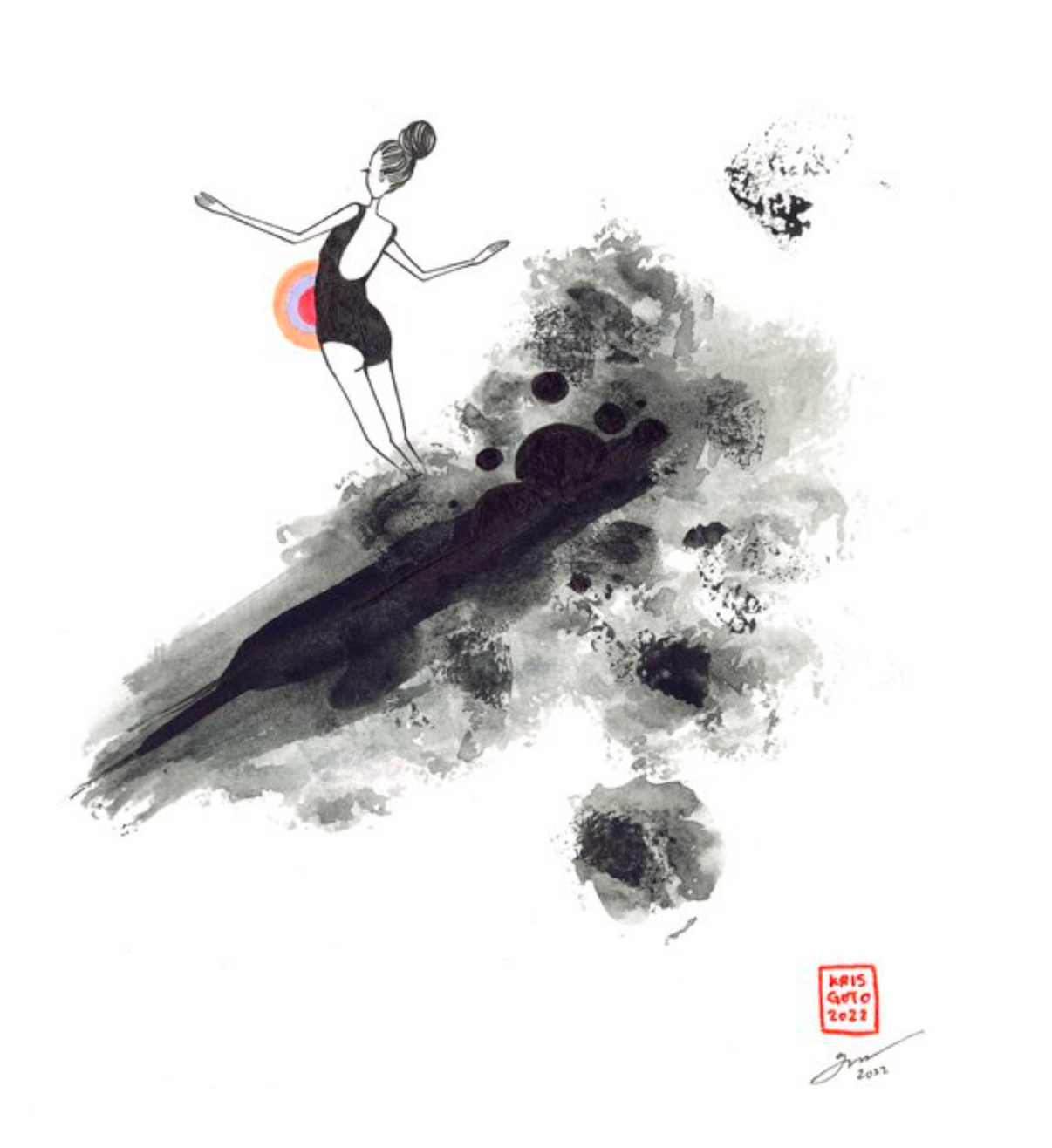 「Life」は、2022年にハレイワ・アーツ・フェスティバルで初公開されたマニニ・シリーズの作品です。ハレイワ・アーツ・フェスティバルは、アーティストが2015年から毎年参加している野外フェスティバルです。このシリーズは、アーティストにとって初の水彩画シリーズでもあります。それぞれの作品は、彼女がこれまで海と築いてきた、あるいは現在も築いている関係性を探求しています。