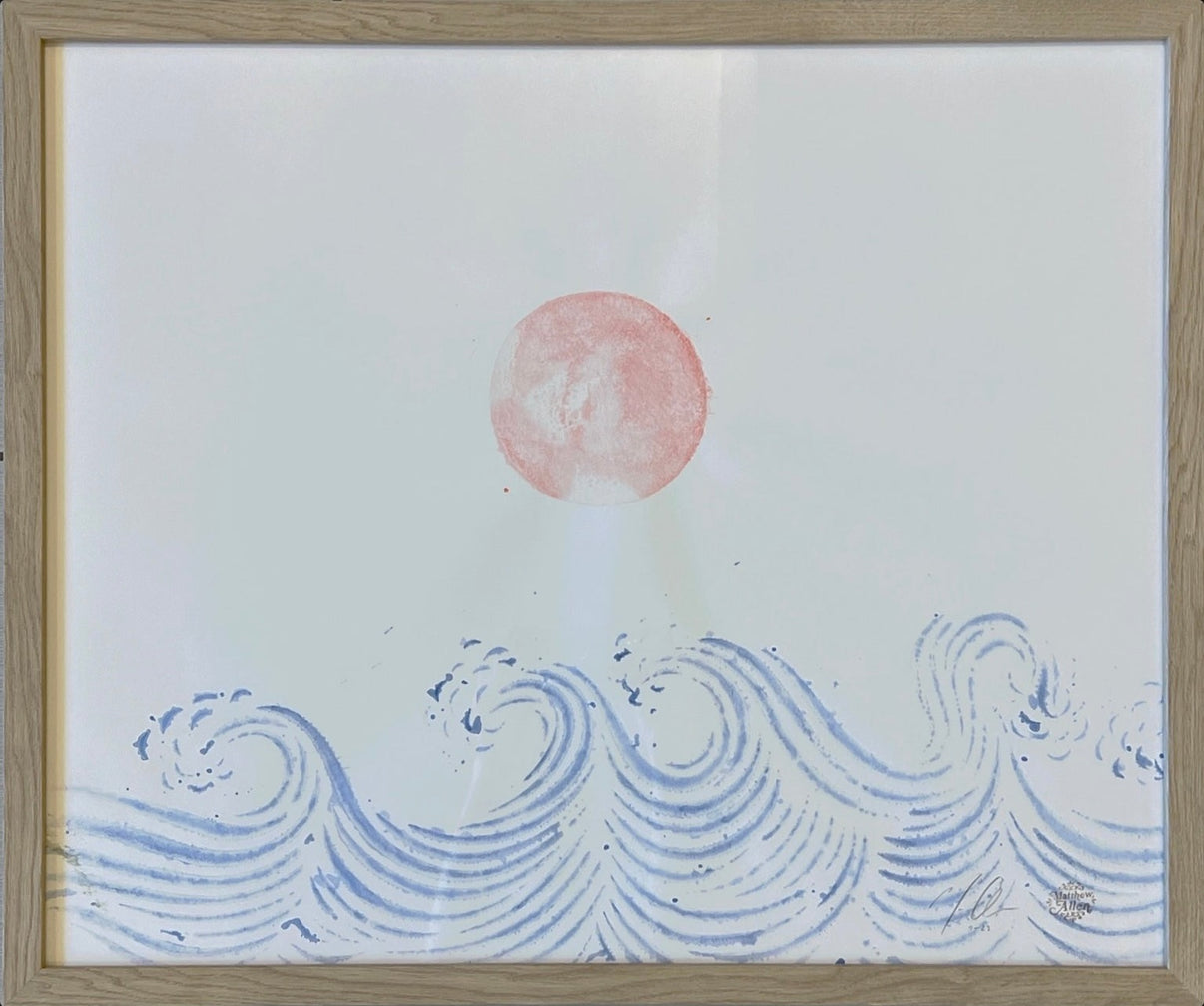 「Following Seas」 - 和紙に描かれたオリジナル手描屏風