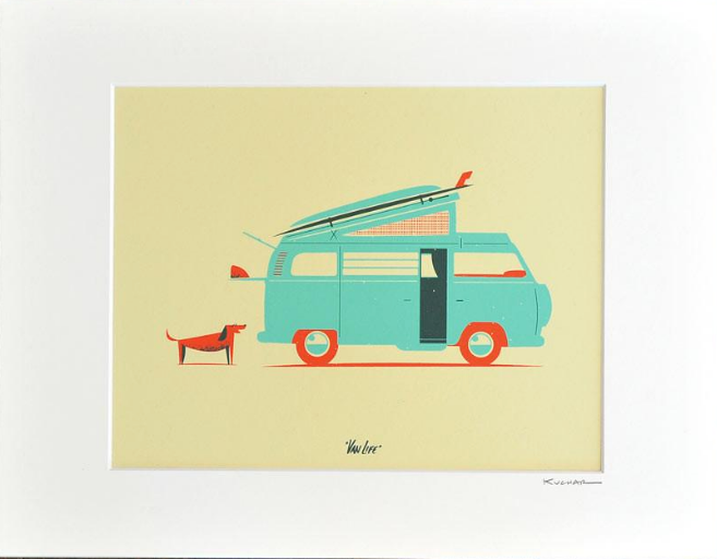 バンを所有するということは、心の状態を変えるということです。好きな場所に駐車し、自然を満喫し、友達をいっぱい乗せてドライブしましょう。プリントについてプリントは8×10インチのサイズで、高品質のフランス製紙に美しくスクリーン印刷されています。その後、標準サイズの11×14インチに合わせてマット加工されています。このプリントはアーティストのニック・クーチャーによってカスタムデザインされ、USPSで発送されます。マットにはニックの直筆サインが入っています。