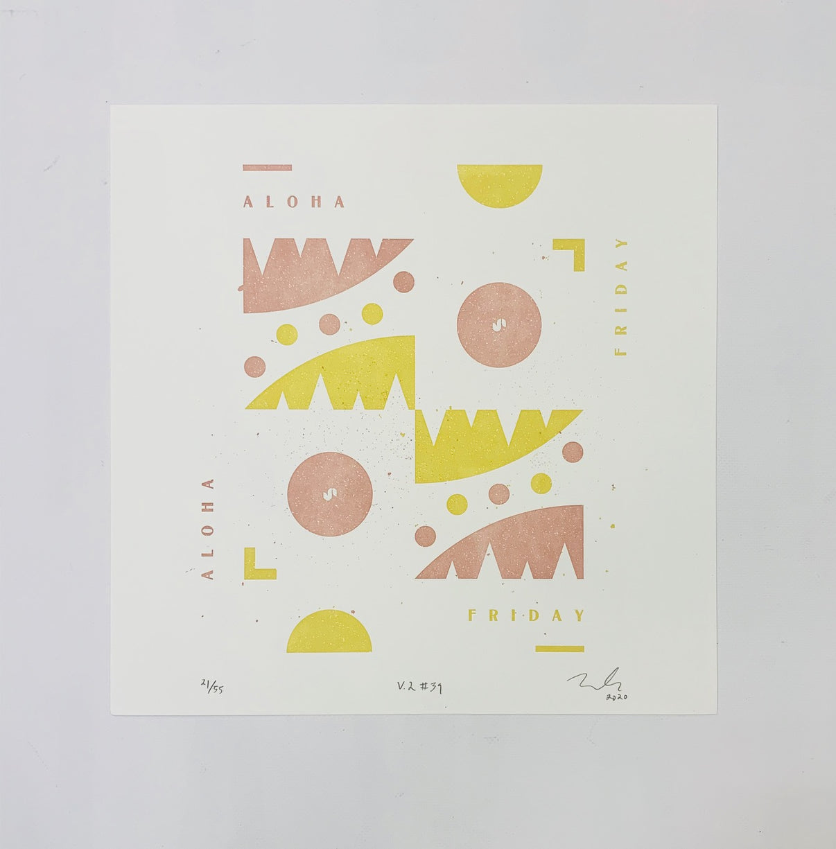 ノア・エンバーソンによるシルクスクリーン版画シリーズ「アロハ・フライデー」限定版シルクスクリーン(紙)エディションサイズ 50 2016年の「Aloha Vol 7」ノア・エンバーソンとクリス・ゴトーによるデュアル展のシルクスクリーンシリーズ