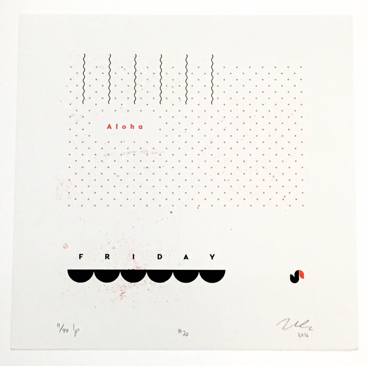 ノア・エンバーソンによるシルクスクリーン版画シリーズ「アロハ・フライデー」限定版シルクスクリーン(紙)エディションサイズ 50 2016年の「Aloha Vol 7」ノア・エンバーソンとクリス・ゴトーによるデュアル展のシルクスクリーンシリーズ