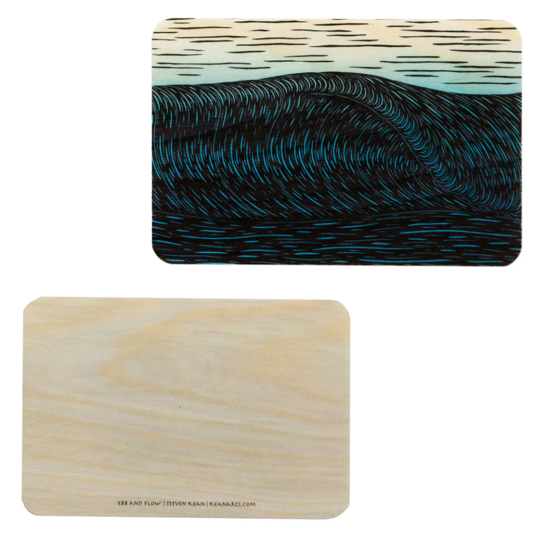 本物の木にプリントされた画像。ポストカードとして郵送できるほど軽量で、額装するとさらに美しく見えます。誕生日や特別な日のカード、サイドテーブルのアクセントなど、様々な用途でご愛用いただいています。ハワイ州オアフ島ノースショアでアロハの気持ちを込めてデザインしました。白黒画像はバーチウッドに印刷されています
