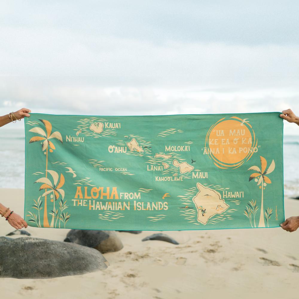 ニック・クーチャー X サーファー タオル E KOMO MAIは、ニック独自のモダンヴィンテージスタイルで描かれた、古典的な島嶼列島地図を現代風にアレンジした作品です。彼のシグネチャーデザインの裏面には、ハワイの豊かな島々にインスピレーションを得たテキスタイルの歴史を象徴する、魅力的なアロハプリントが施されています。 **梱包および発送までに 2 ~ 4 週間ほどかかる場合がありますのでご了承ください。