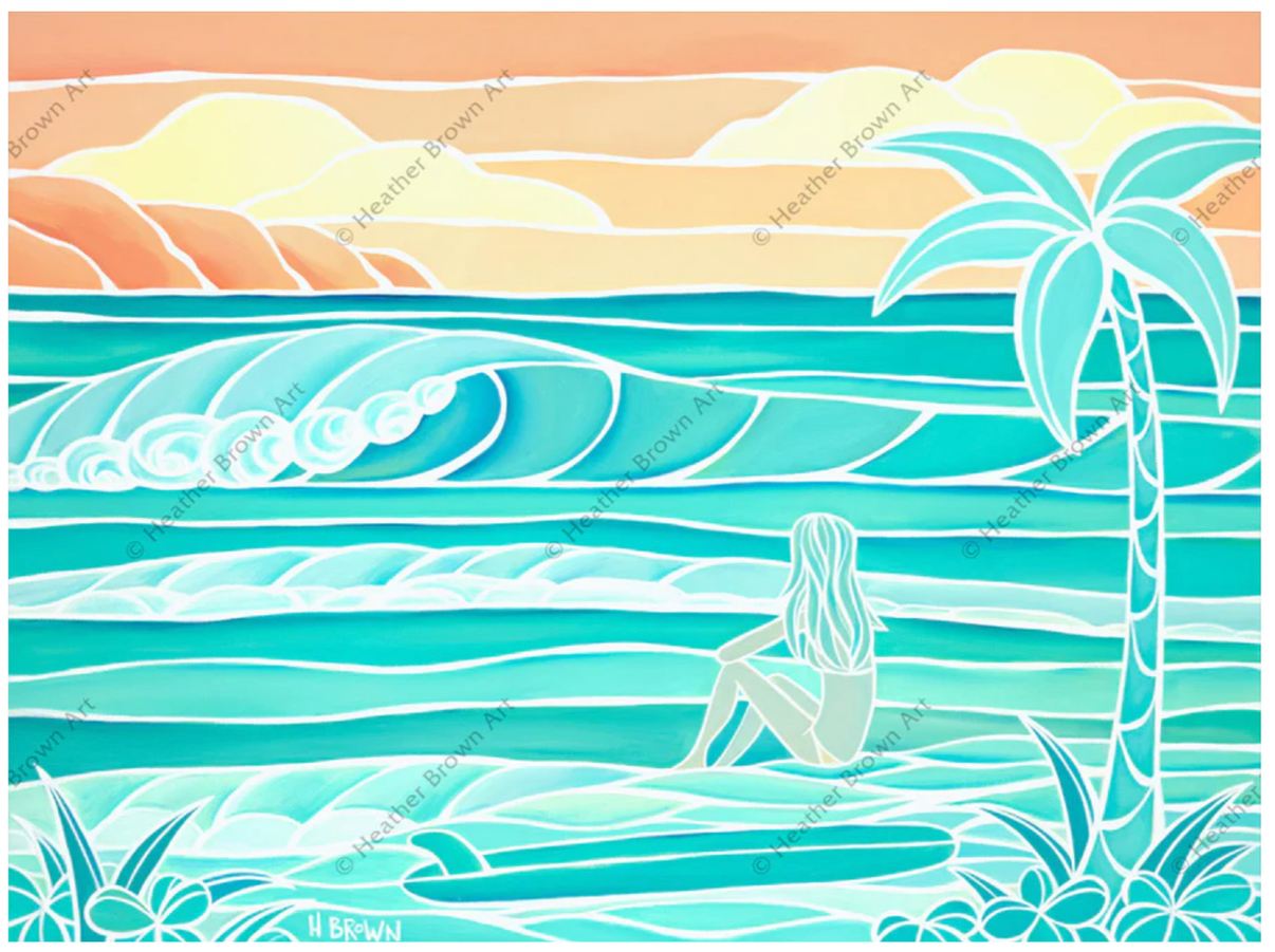 波を眺めるサーファーガール - 限定版キャンバスアートジクレープリント