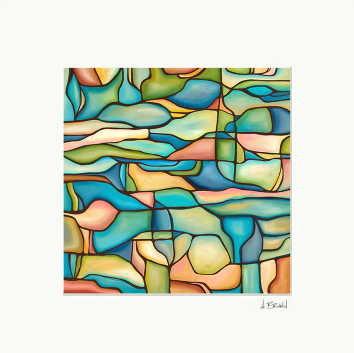 ハワイの夏の日に、太陽が輝くビーチに打ち寄せるうねる波を描いた、ヘザー・ブラウンによるマット加工のアートワーク。オアフ島ノースショアのサーフアーティスト、ヘザー・ブラウンによるマット加工のプリントです。