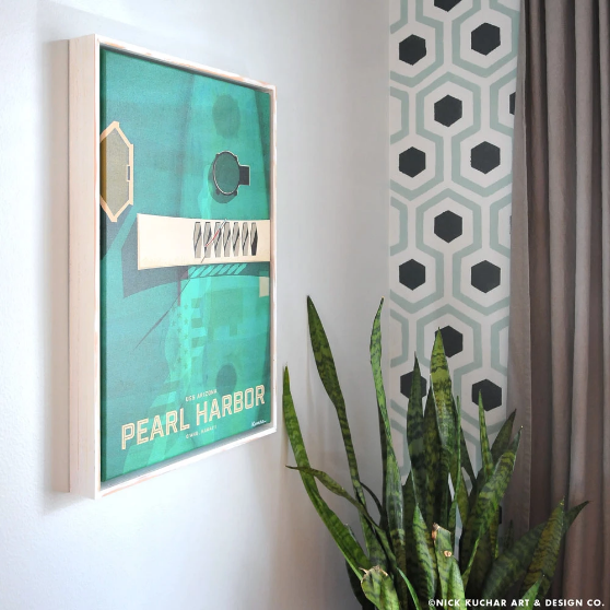 このキャンバスラップジクレー(ジクレーとは「非常に美しいファインアートインクジェットプリント」を意味する専門用語です)は、厚手のアーカイブキャンバスにデジタル印刷され、厚さ1.5インチの丈夫な木製バーに張られています。プリント全体を覆う透明ラミネート加工も施されています。キャンバスラップには、オアフ島産の再生木材で手作りされた白いフローティングフレームが付属しています。背面の金具を使ってキャンバスを吊るすだけで、簡単に作品を飾ることができます。*当社の再生木材フレームはどれも、素材の特性により一つ一つがわずかに異なります。写真とは多少異なる場合があります。