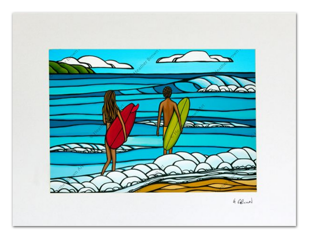 ハワイの夏の日に、太陽が輝くビーチに打ち寄せるうねる波を描いた、ヘザー・ブラウンによるマット加工のアートワーク。オアフ島ノースショアのサーフアーティスト、ヘザー・ブラウンによるマット加工のプリントです。 このプリントにはエンボス加工のマットが付属し、再生紙とサトウキビ紙で制作されています。裏面にはアーティストの略歴が添えられており、3つのサイズからお選びいただけます。 プリントに合わせて、様々な色を取り揃えた手作りのフレームをご用意しております。お客様のインテリアニーズに合わせてお選びいただけます。フレームの製作には、可能な限り再生木材やリサイクル木材を使用するよう努めています。紙にジクレー印刷マットサイズ: 8 x 10インチ / 約30.5 × 30.5 cm 11 x 14インチ / 約27.9 x 35.6 cm 16 x 20インチ / 約40.6 x 50.8 cm額装サイズ: 8x10インチプリント:12.75 x 14.75インチ / 約32.4 x 37.5 cm 11x14インチプリント:15.75 x 18.75インチ / 約40 x 47.6 cm 16x20インチプリント:20.75 x 24.75インチ / 約52.7 x 62.9 cm 11x14インチのプリント、バーンウッドフレーム付き:14.5 x 17.5インチ / 約36.8 x 44.5 cm *...
