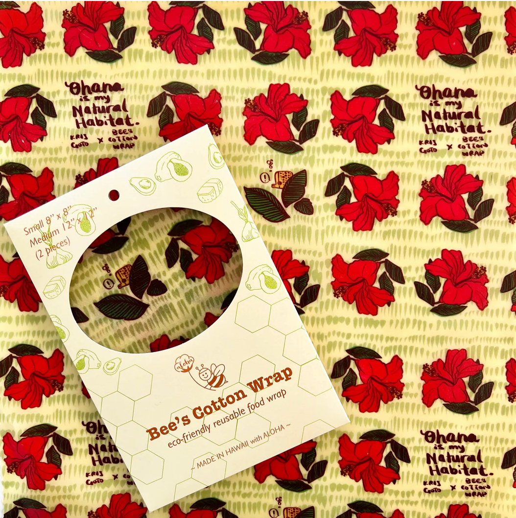 GOTS認証オーガニックコットン、ハワイ産蜜蝋、オーガニックホホバオイル、樹脂、そしてたくさんのALOHAの気持ちを込めて作られています!これらの成分から生まれた天然の抗菌作用を持つ蜜蝋クロスは、食品の鮮度と美味しさを保ちます。
