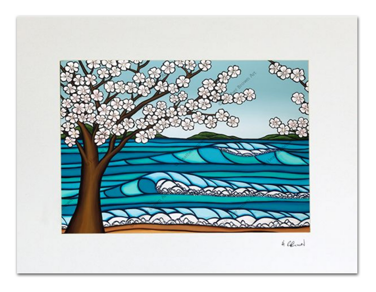 ハワイの夏の日に、明るい太陽が降り注ぐビーチに向かって打ち寄せる波を描いた、ヘザー ブラウンによるマット加工のアートワークです。オアフ島ノースショアのサーフアーティスト、ヘザー・ブラウンによるマットプリント。エンボス加工のマット付きで、再生紙とサトウキビ紙を使用しています。裏面にはアーティストの略歴が添えられており、3サイズからお選びいただけます。 プリントに合わせて、様々な色を取り揃えた手作りのフレームをご用意しております。お客様のインテリアニーズに合わせてお選びいただけます。フレームの製作には、可能な限り再生木材やリサイクル木材を使用するよう努めています。 紙にジクレー印刷 マットサイズ: 8 x 10インチ / 約30.5 × 30.5 cm 11 x 14インチ / 約27.9 x 35.6 cm 16 x 20インチ / 約40.6 x 50.8 cm 額装サイズ: 8x10インチプリント:12.75 x 14.75インチ / 約32.4 x 37.5 cm 11x14インチプリント:15.75 x 18.75インチ / 約40 x 47.6 cm 16x20インチプリント:20.75 x 24.75インチ / 約52.7 x 62.9 cm 11x14インチのプリント、バーンウッドフレーム付き:14.5 x 17.5インチ / 約36.8 x...
