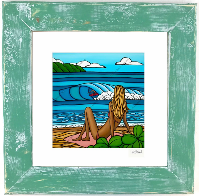 ハワイの夏の日に、明るい太陽が降り注ぐビーチに向かって打ち寄せる波を描いた、ヘザー ブラウンによるマット加工のアートワークです。オアフ島ノースショアのサーフアーティスト、ヘザー・ブラウンによるマットプリント。エンボス加工のマット付きで、再生紙とサトウキビ紙を使用しています。裏面にはアーティストの略歴が添えられており、3サイズからお選びいただけます。プリントに合わせて、様々な色を取り揃えた手作りのフレームをご用意しております。お客様のインテリアニーズに合わせてお選びいただけます。フレームの製作には、可能な限り再生木材やリサイクル木材を使用するよう努めています。 紙にジクレー印刷 マットサイズ: 12 x 12インチ / 約30.5 × 30.5 cm 額装サイズ:16.75 x 16.75インチ / 約42.5 x 42.5 cm *梱包および発送までに最大 3 週間ほどかかる場合がありますのでご了承ください。 ***実際のフレームの色やサイズはサンプル画像と異なる場合があります。