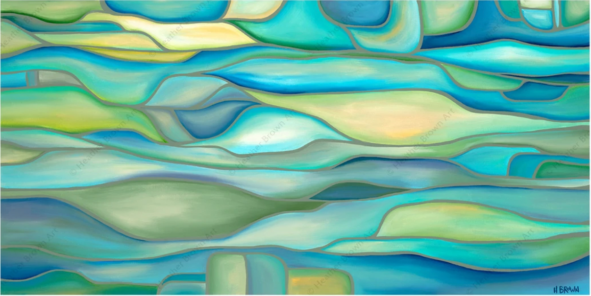 「 『ウォーターリーフ』は、水面を眺め、影やハイライト、動きに集中することで得たインスピレーションから生まれた抽象画です。抽象画は色彩と空間に集中させてくれるので大好きです。」