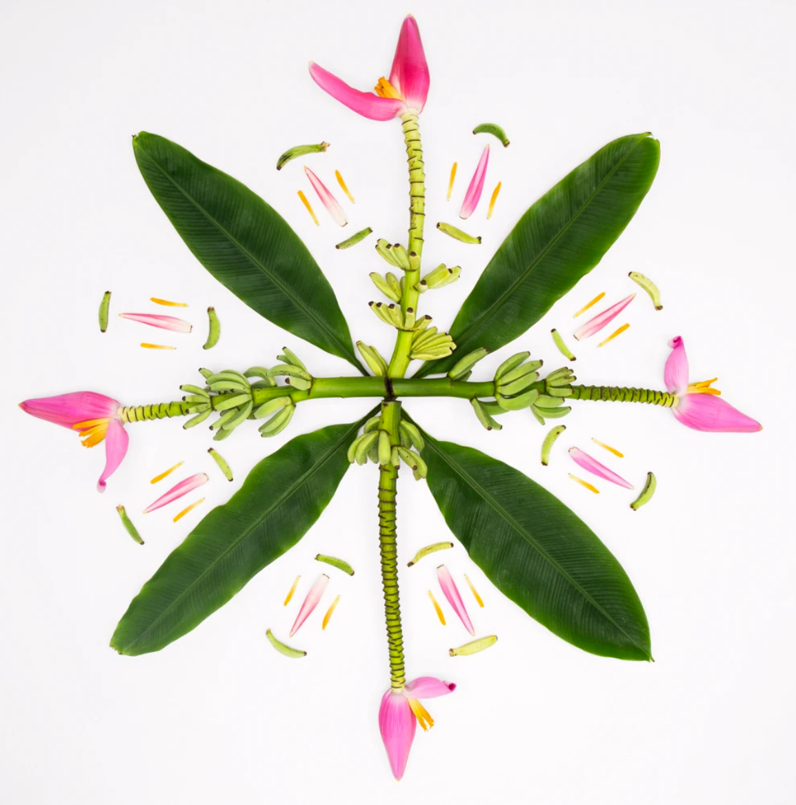 Flowers in Image : Musa Ornata Ornamental Banana Plant, Banana Leaves and Pieces
