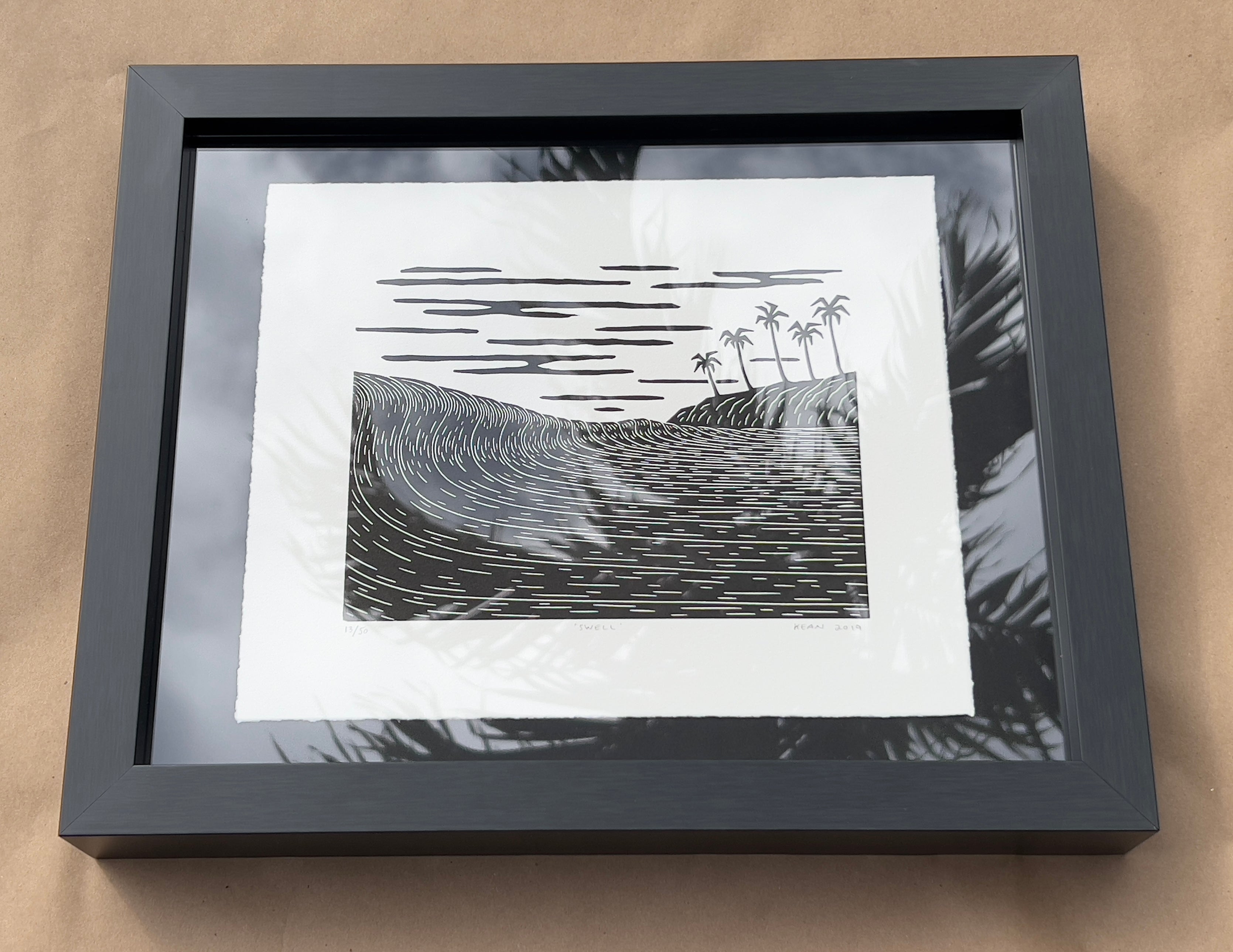 "Swell" Limited Edition, Framed, Original Linocut. #13/50